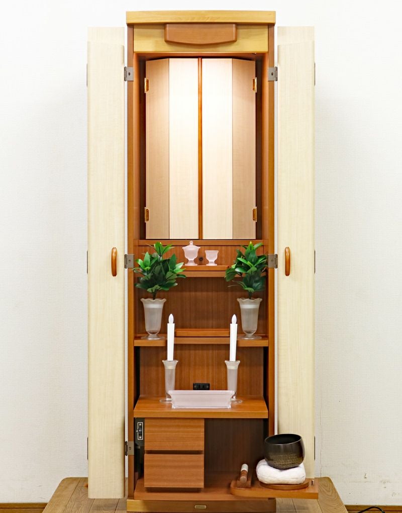 現在も新品販売しています人気商品で、中古と思えないほどきれいな仏壇です。おしゃれですっきりとしたツートンの家具調電動仏壇になります。中古仏壇と侮るなかれ!桜梅桃李.comは日本で一番人気の創価中古仏壇店です。