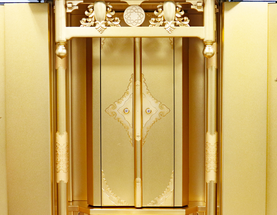 美しい金色にまとめた厨子内・厨子扉デザインです。