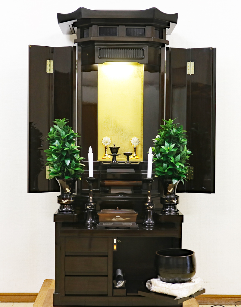 内部には蛍光灯照明も付属していますのでご本尊様を明るく照らしてくれます。