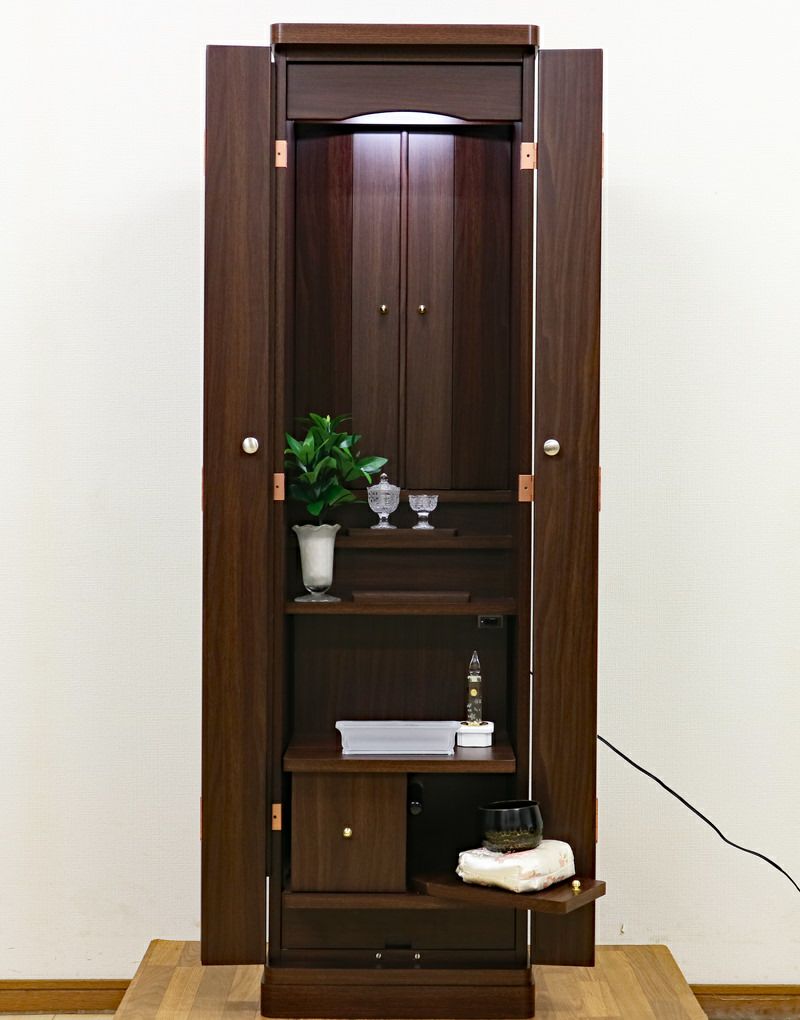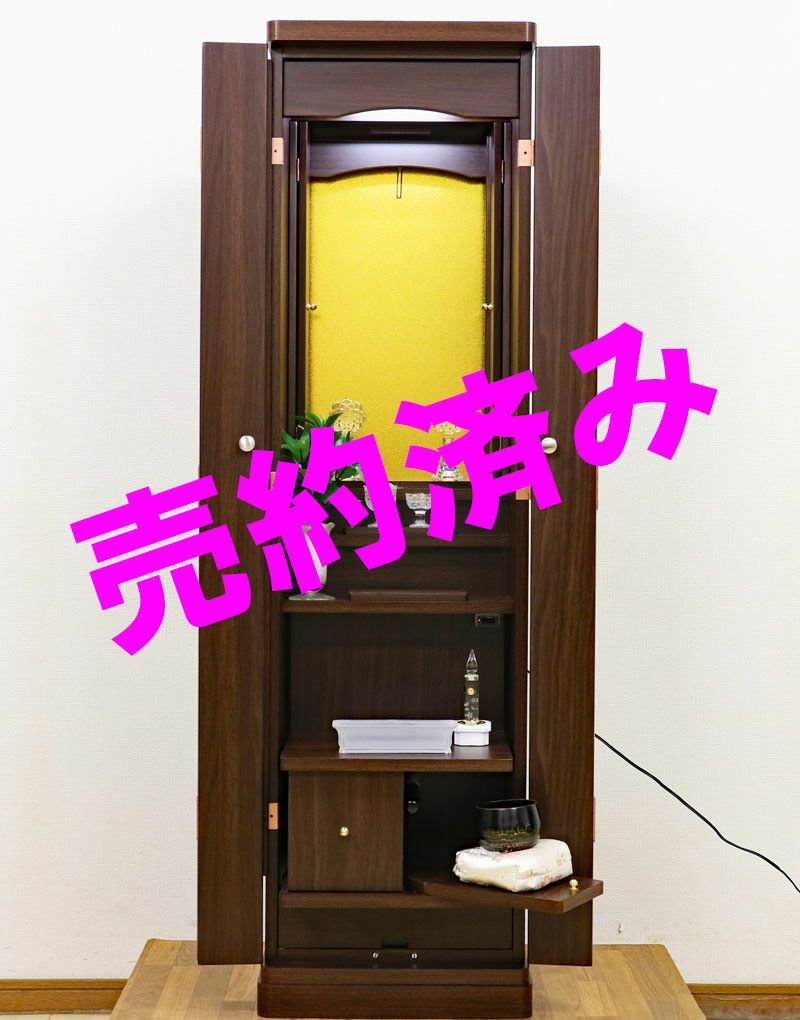 LED照明が搭載されている手動厨子扉の中古仏壇です。お手頃価格ですので、ワンルームや就職・大学進学・お一人暮らしにも最適です。