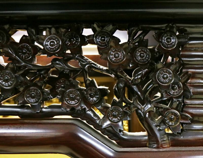 厨子の上部にも桜の彫刻が施されており、
