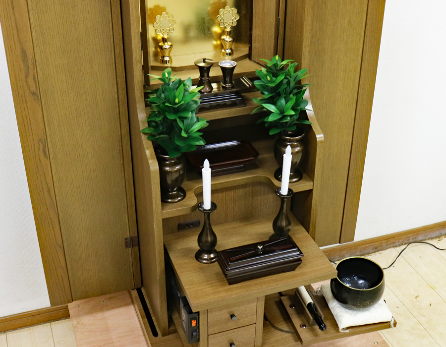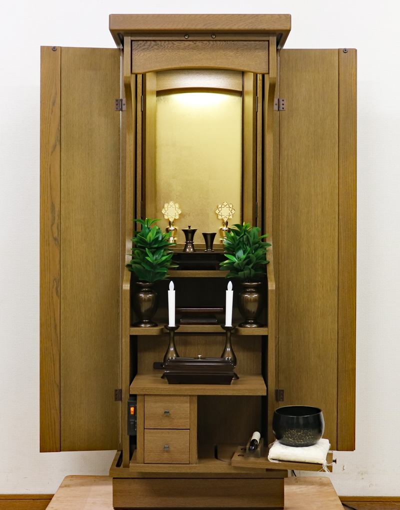 内部には蛍光灯照明も付属していますのでご本尊様を明るく照らしてくれます。