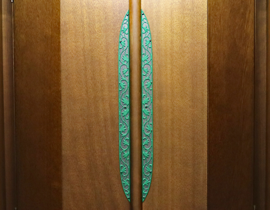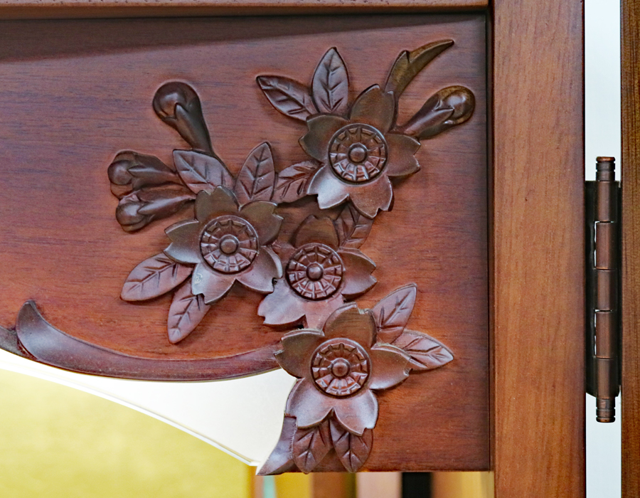 すりガラスや桜の彫刻など、洗練された欄間デザインとなっております。