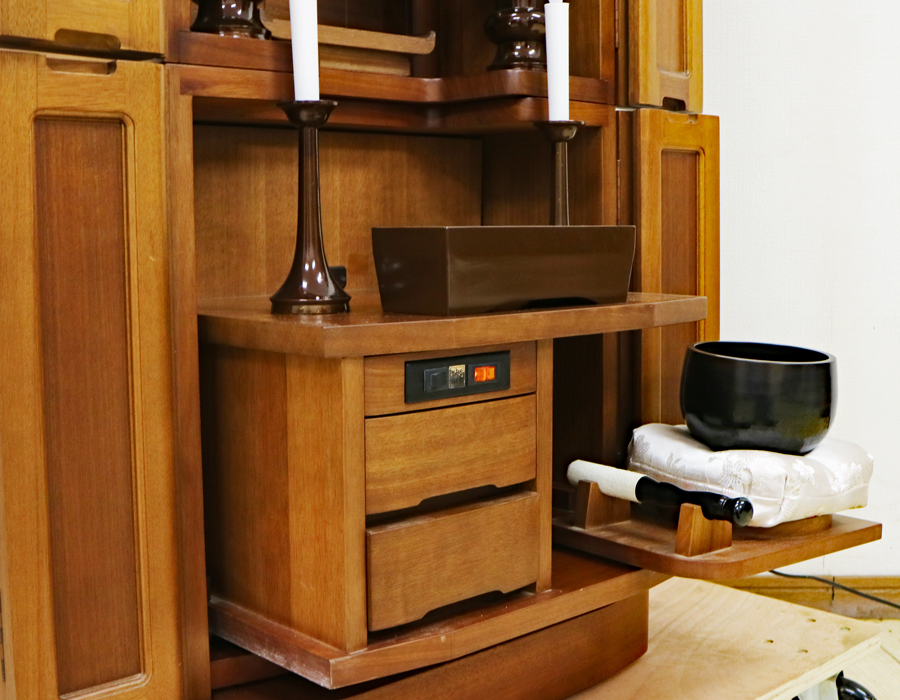 上記お写真の青丸の箇所(仏壇一番下の引き出し)に