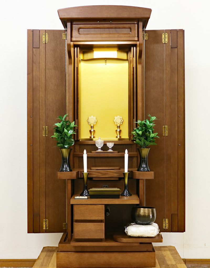 内部には蛍光灯照明も付属していますのでご本尊様を明るく照らしてくれます。