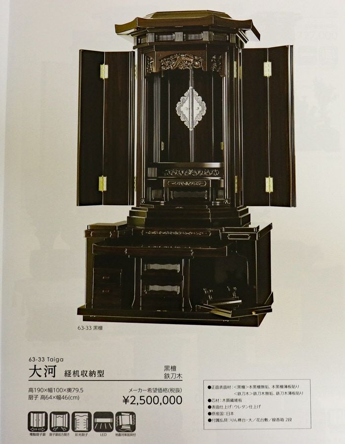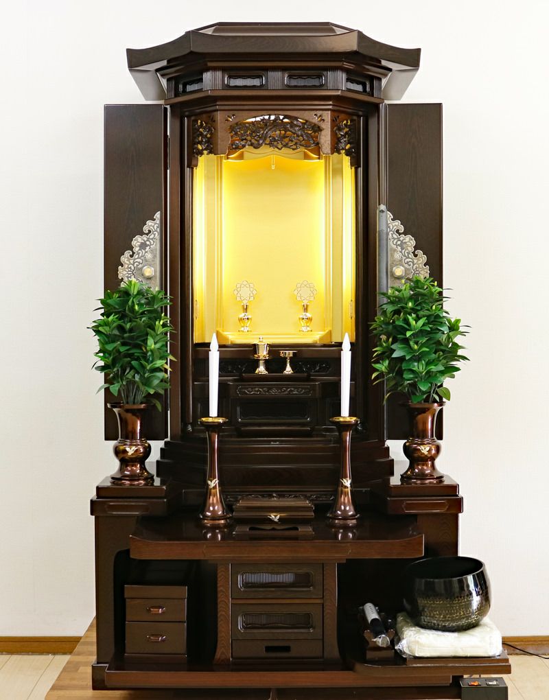 お厨子上部だけでなく、両脇にも照明がついている彩光厨子を採用しているので、御本尊様を明るく拝すことができます。