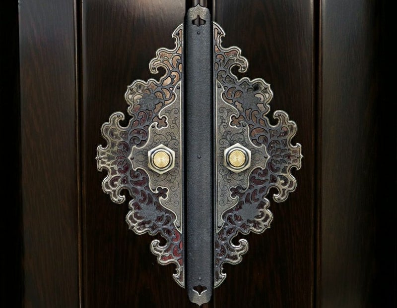 厨子扉にも、高級いぶし銀を使用した金具が施されております。