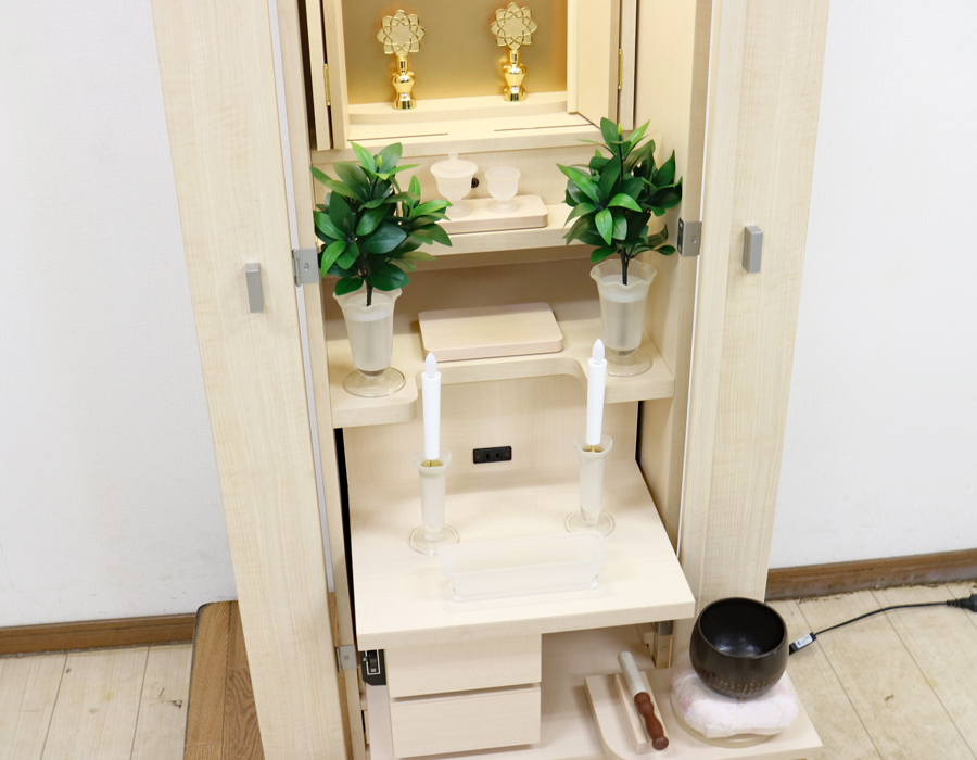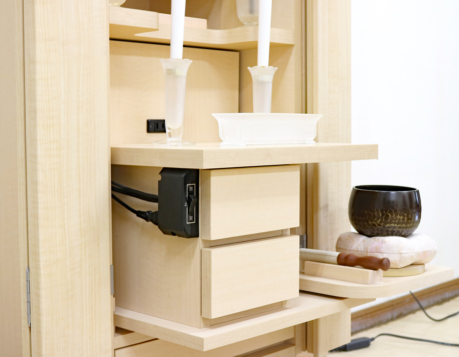 仏壇下部に引き出しが3箇所ございます。