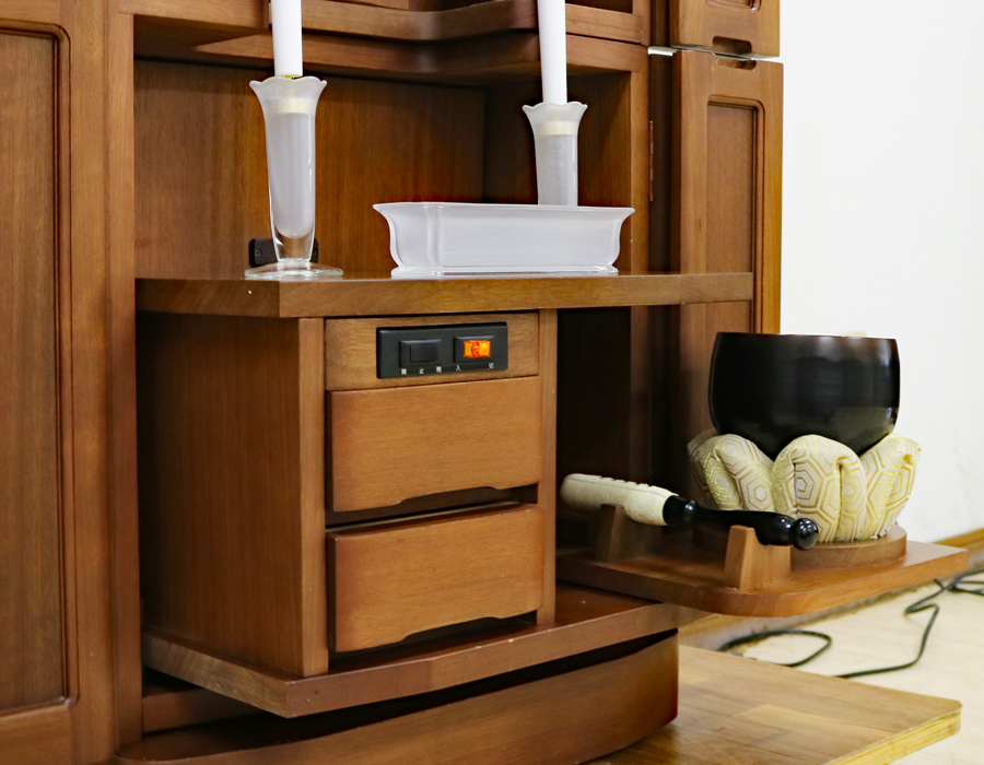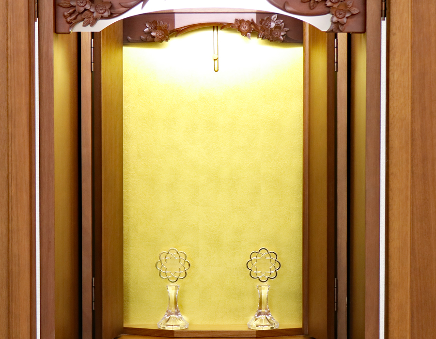 内部には蛍光灯照明も付属していますのでご本尊様を明るく照らしてくれます。