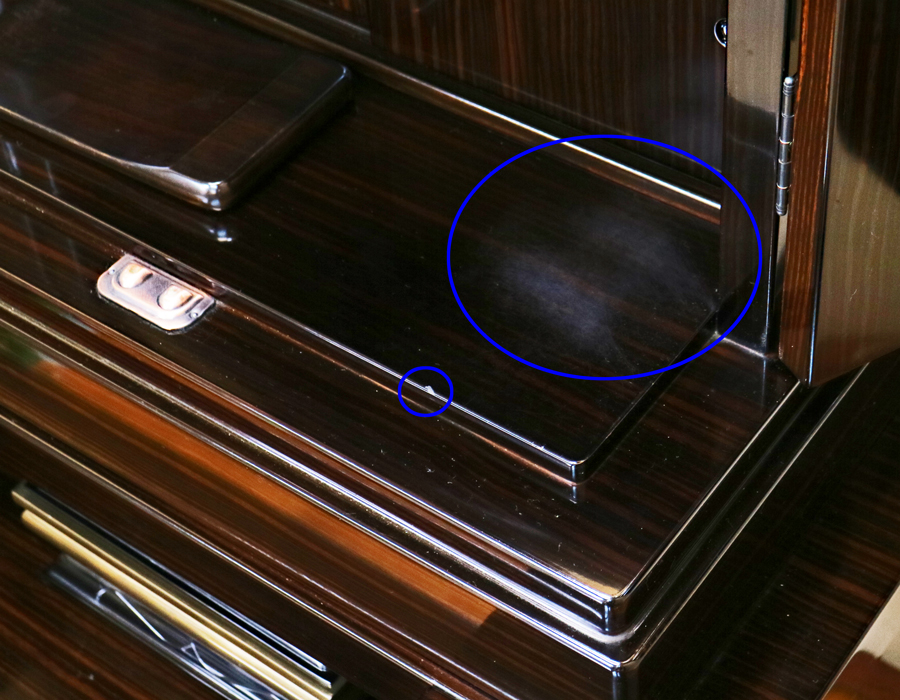 上記お写真の青丸の箇所(三宝を置く箇所周辺)に擦り傷等がございます。