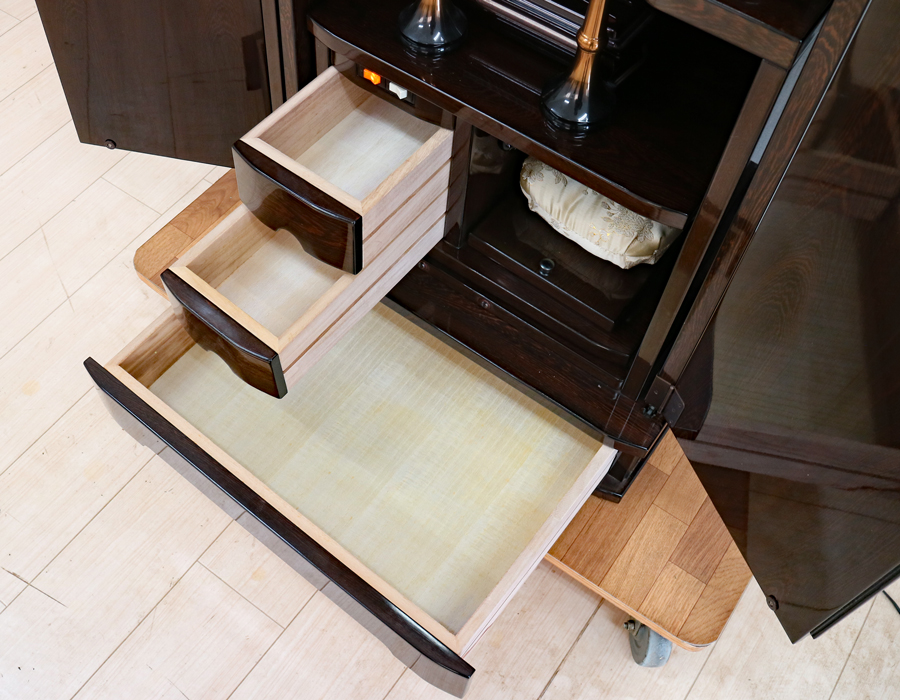 押し込み式大戸ですので、押し込むことで斜めからもご本尊様を拝すことができます。