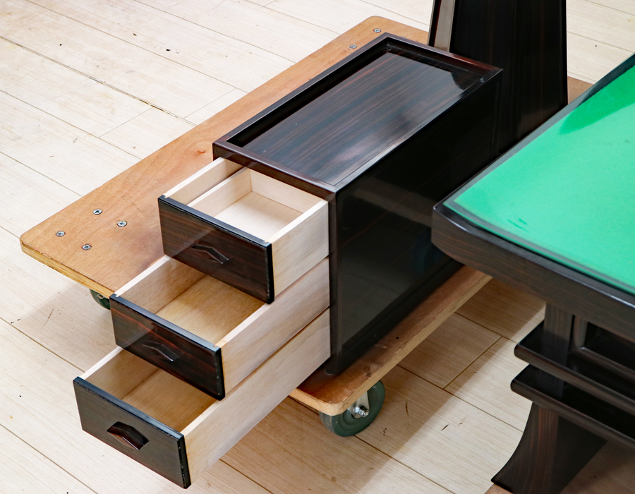 経机両脇に日焼けが見られますが、デスクマットが付属いたしますので気になることはありません。
