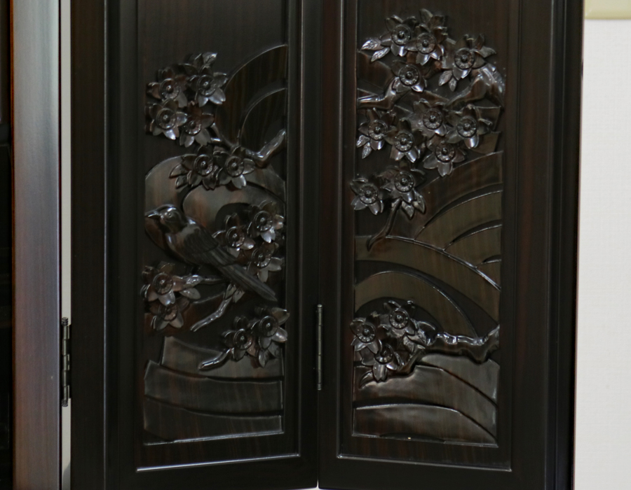 厨子中は格子の付いた格式のあるデザインとなっております。