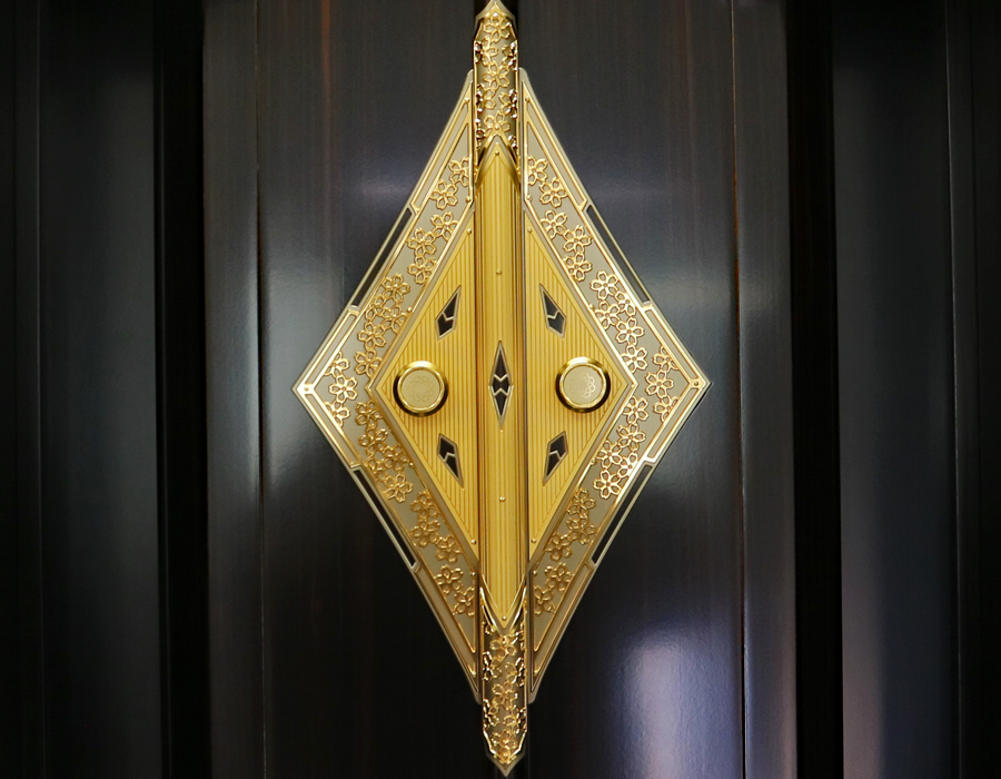 厨子扉の金具は職人は手作り作成したこだわりのデザインとなっております。