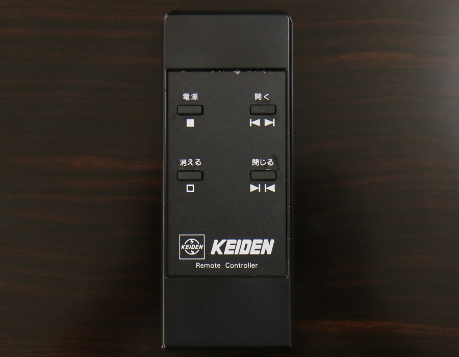 上記お写真のリモコンで電源の入り切り、電動厨子扉の開閉を行います。