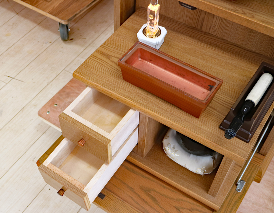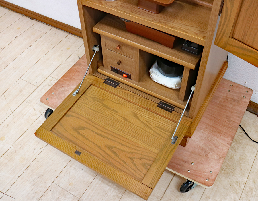 仏壇下部の扉を手前に引くと、収納経机があります。