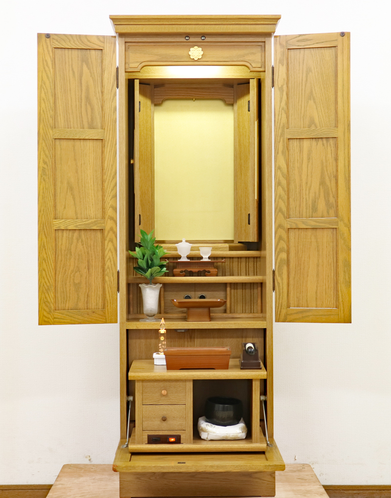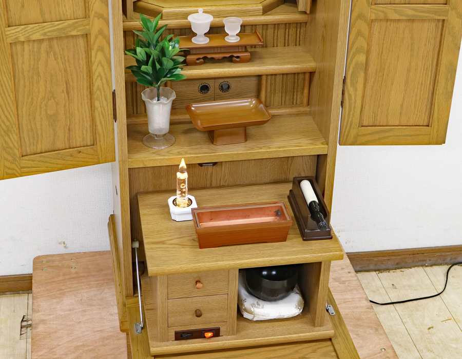 内部には蛍光灯照明も付属していますのでご本尊様を明るく照らしてくれます。