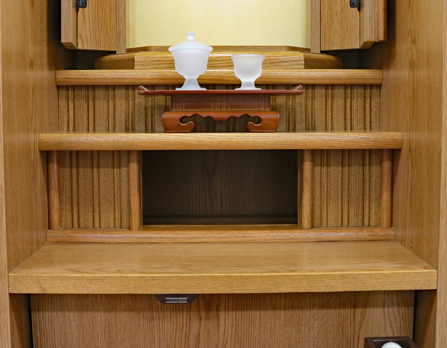 お仏壇の形式が古く、仏壇側面に傷があるためB級仏壇として格安にてご提供させていただきます。落ち着いた木のやさしさを感じるお仏壇です。