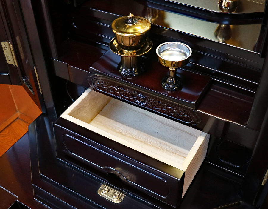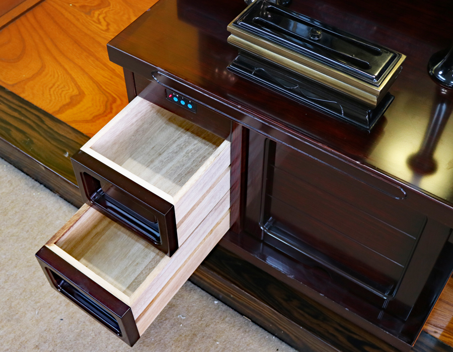 収納経机に引き出しが、2箇所ございます。