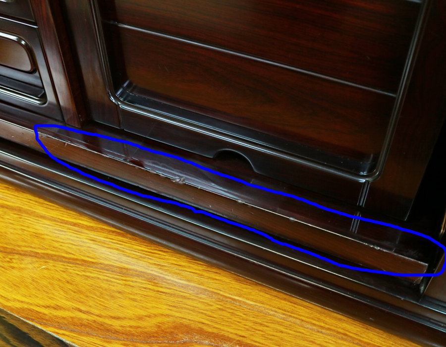 仏壇下部に打ち傷がございましたので、補修(着色)致しました。