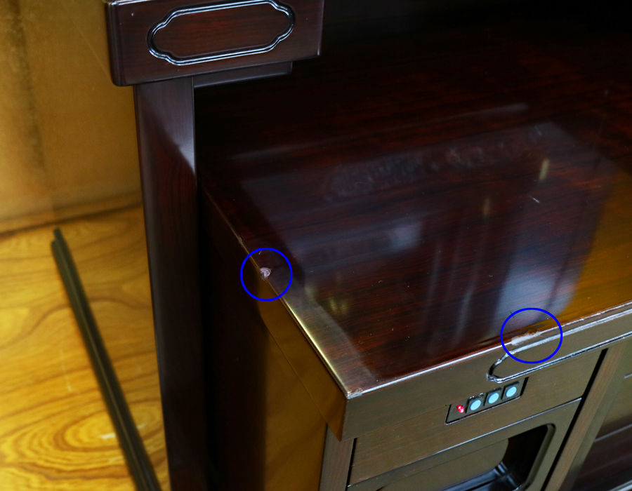 収納経机に打ち傷がございましたので、補修(着色)致しました。