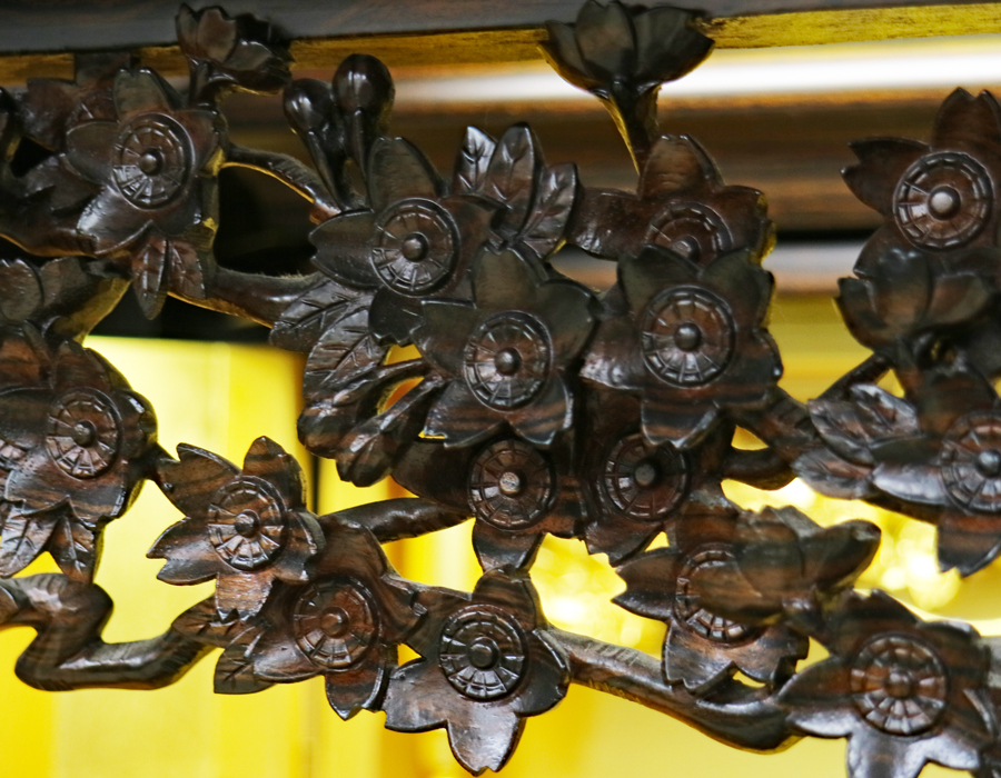 大戸内側には素晴らしい黒檀の桜の彫が施されております。