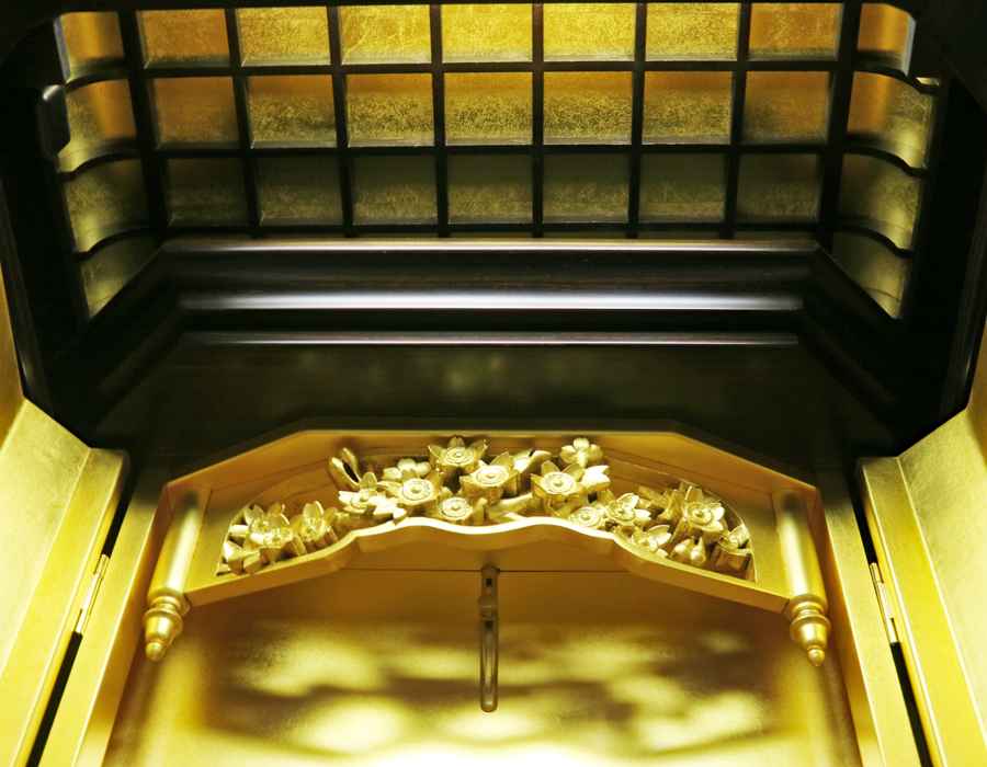 お厨子を開くと美しく本金箔を施した厨子板がご本尊様をさらに荘厳にしてくれます。
