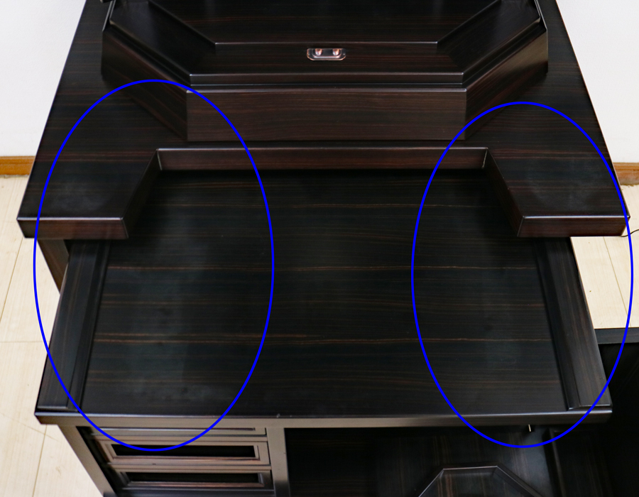 上記お写真の青丸の箇所(収納経机・花立を置く箇所)にに白ボケが見られます。