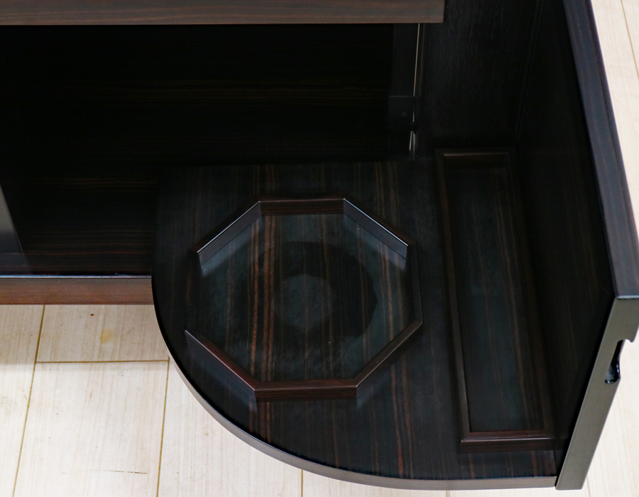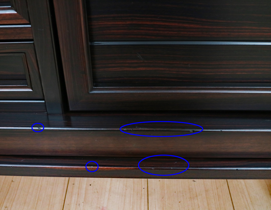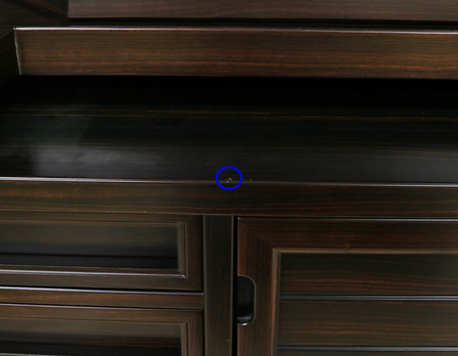 上記お写真青丸の箇所(収納経机)小さなうち傷がございます。