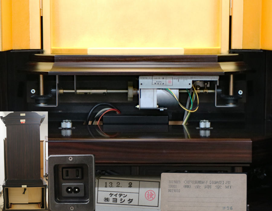 本金箔と金色塗装では輝きが違うのは一目瞭然です。 内部には蛍光灯照明も付属していますのでご本尊様を明るく照らしてくれます。