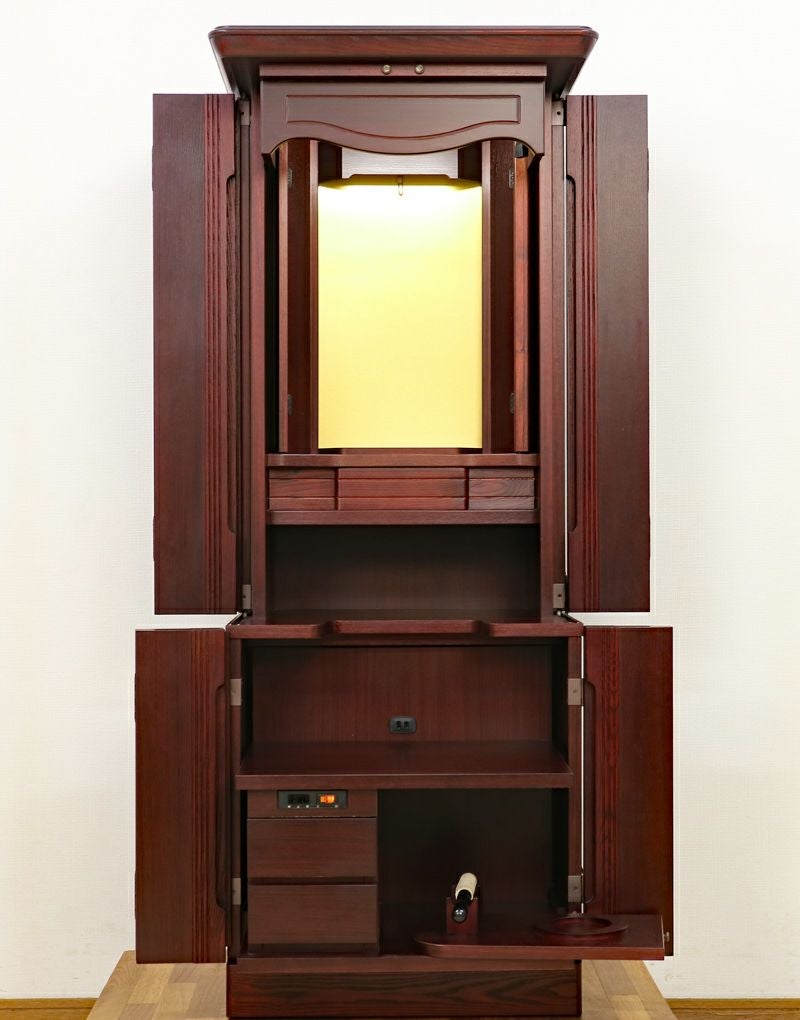 内部には蛍光灯照明も付属していますのでご本尊様を明るく照らしてくれます。