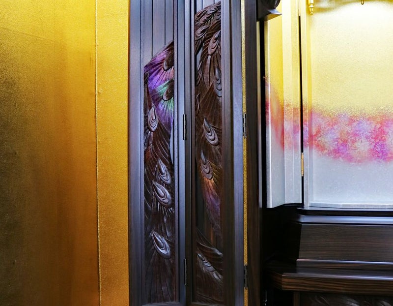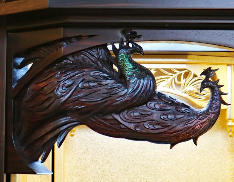 欄間から大戸にかけて、美しい孔雀の彫が施されております。