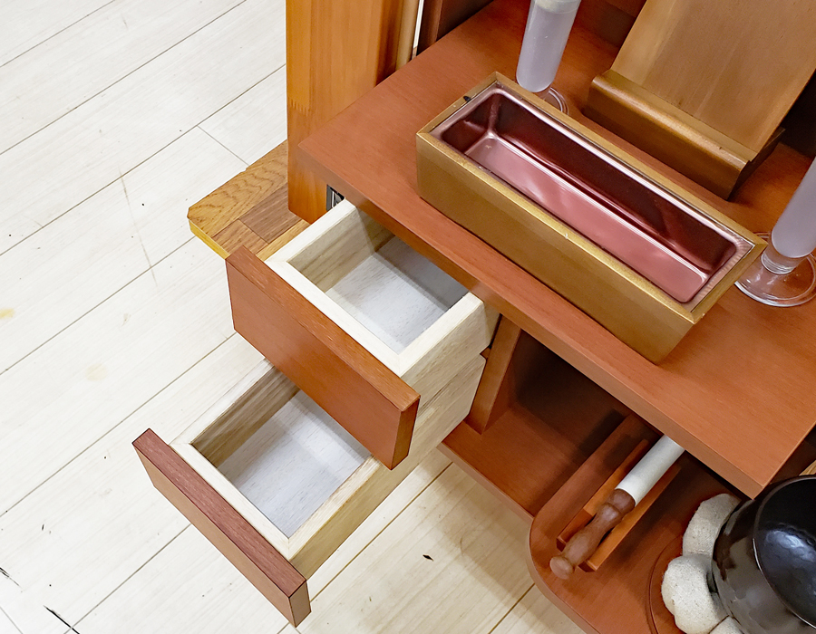 仏壇下部に引き出しが2箇所ございます。