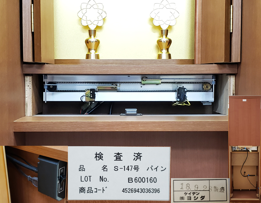 電動開閉機の製造が平成18年9月製造のため、製造から14年前のお仏壇となります。
