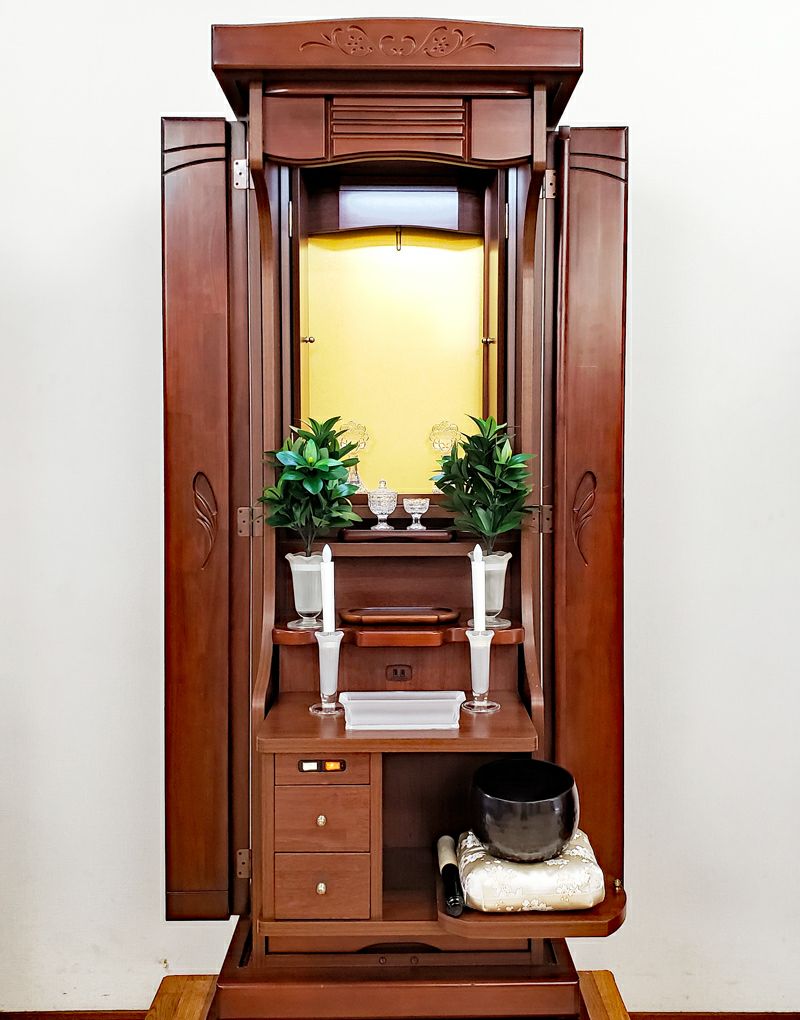 押し込み式大戸ですので、押し込むことで斜めからもご本尊様を拝すことができます。
