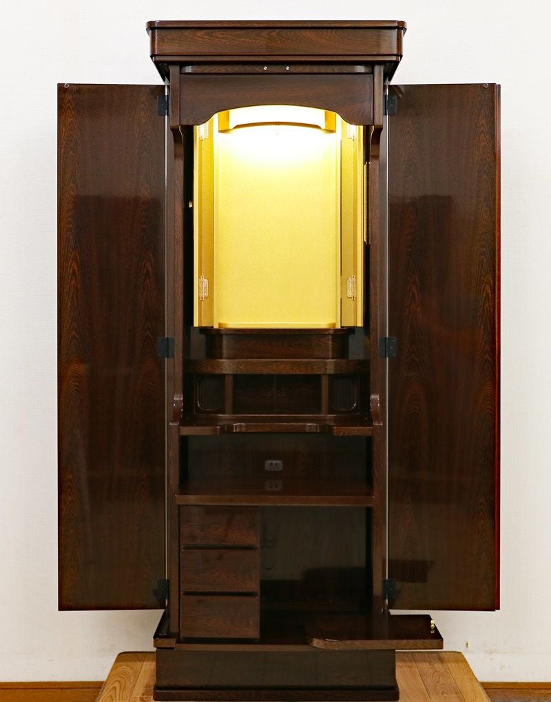 内部には蛍光灯照明も付属していますのでご本尊様を明るく照らしてくれます。