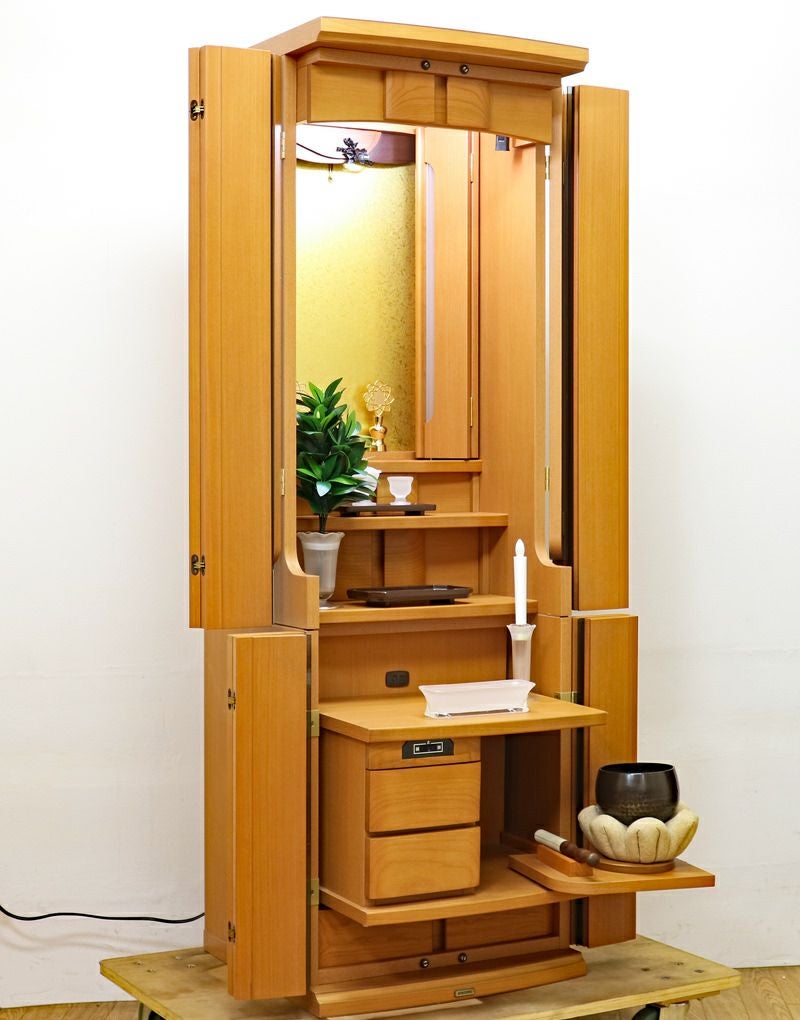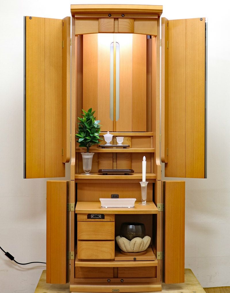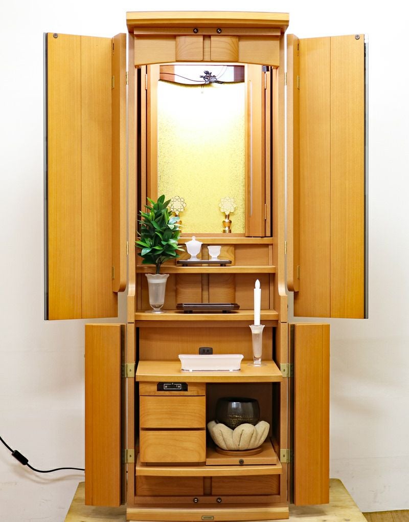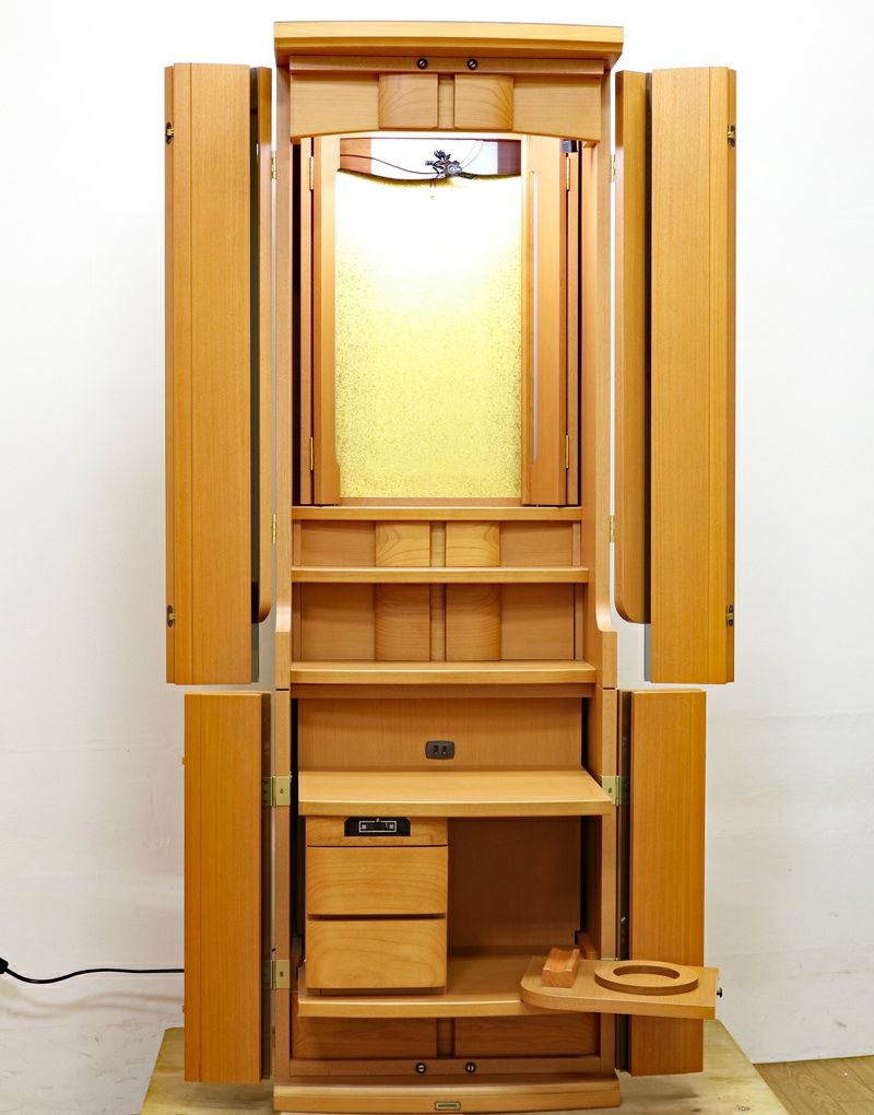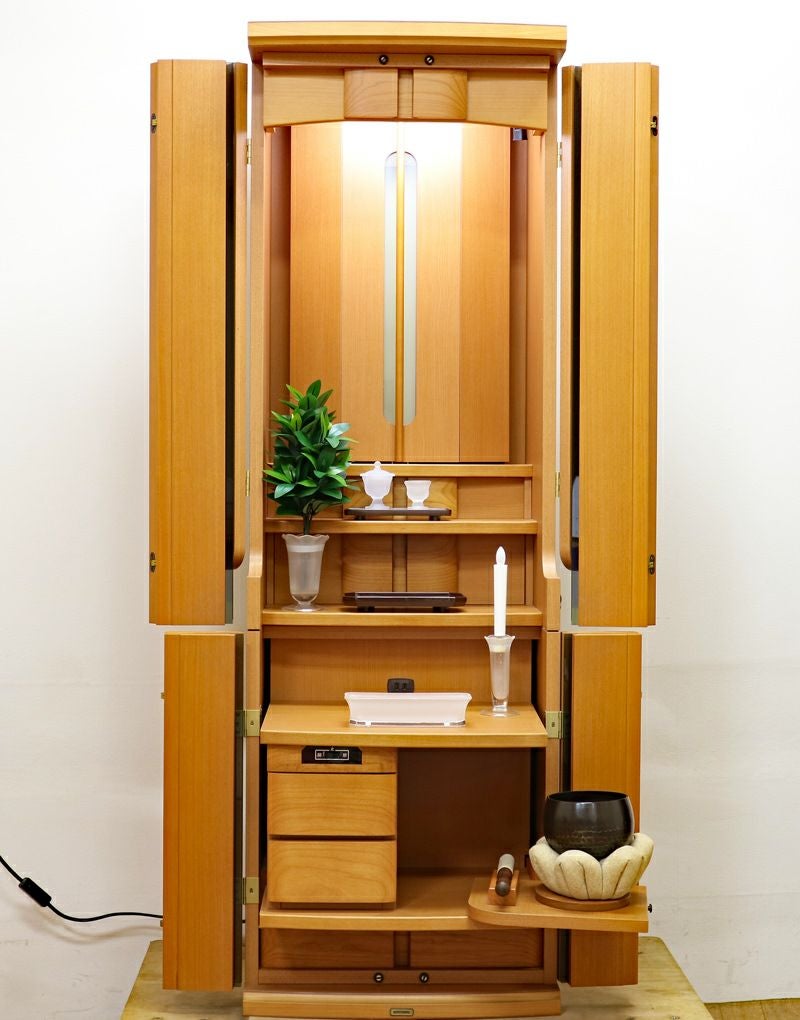内部には蛍光灯照明も付属していますのでご本尊様を明るく照らしてくれます。