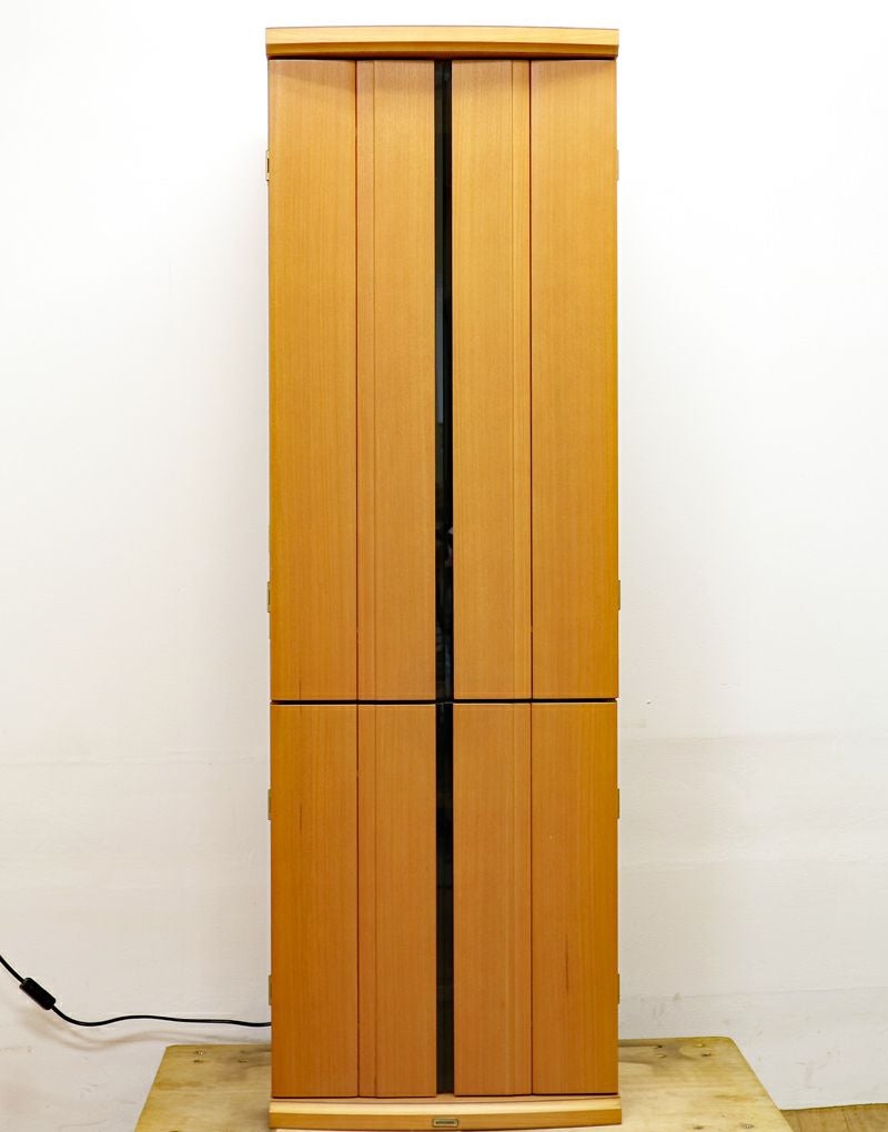 金剛堂製の二段重ねの家具調電動仏壇です。厨子上部にある桜の彫刻はオシャレな雰囲気漂うデザインに仕上がっております。大扉と厨子扉の中央にすりガラスが施されているスマートなデザインも特徴的です。和室・洋室・リビングダイニングにも最適です。