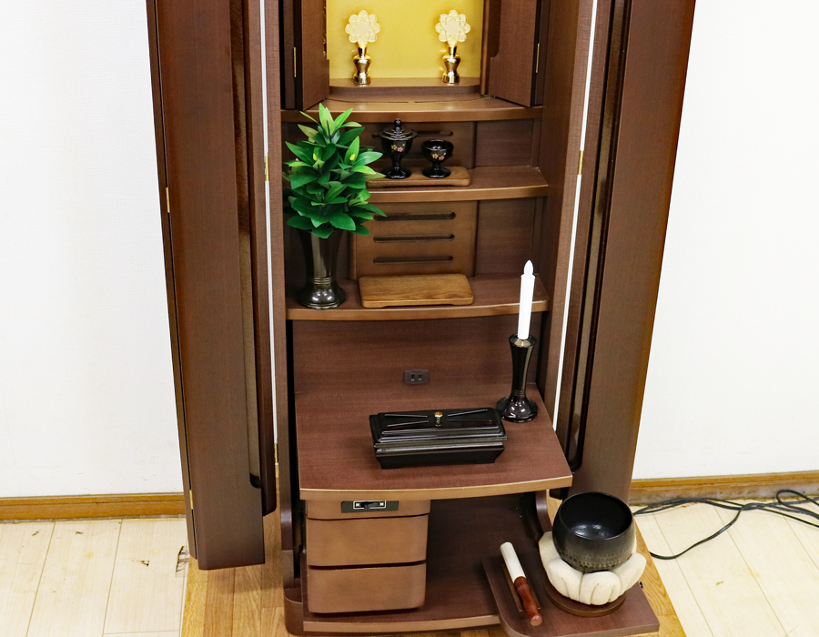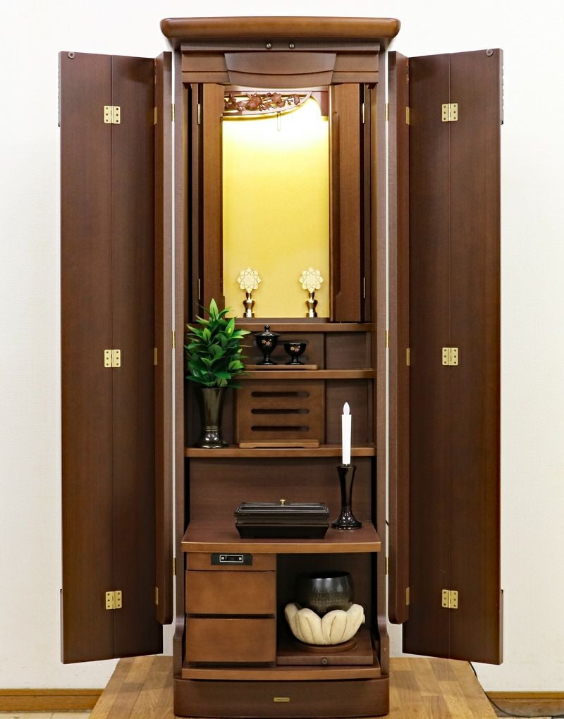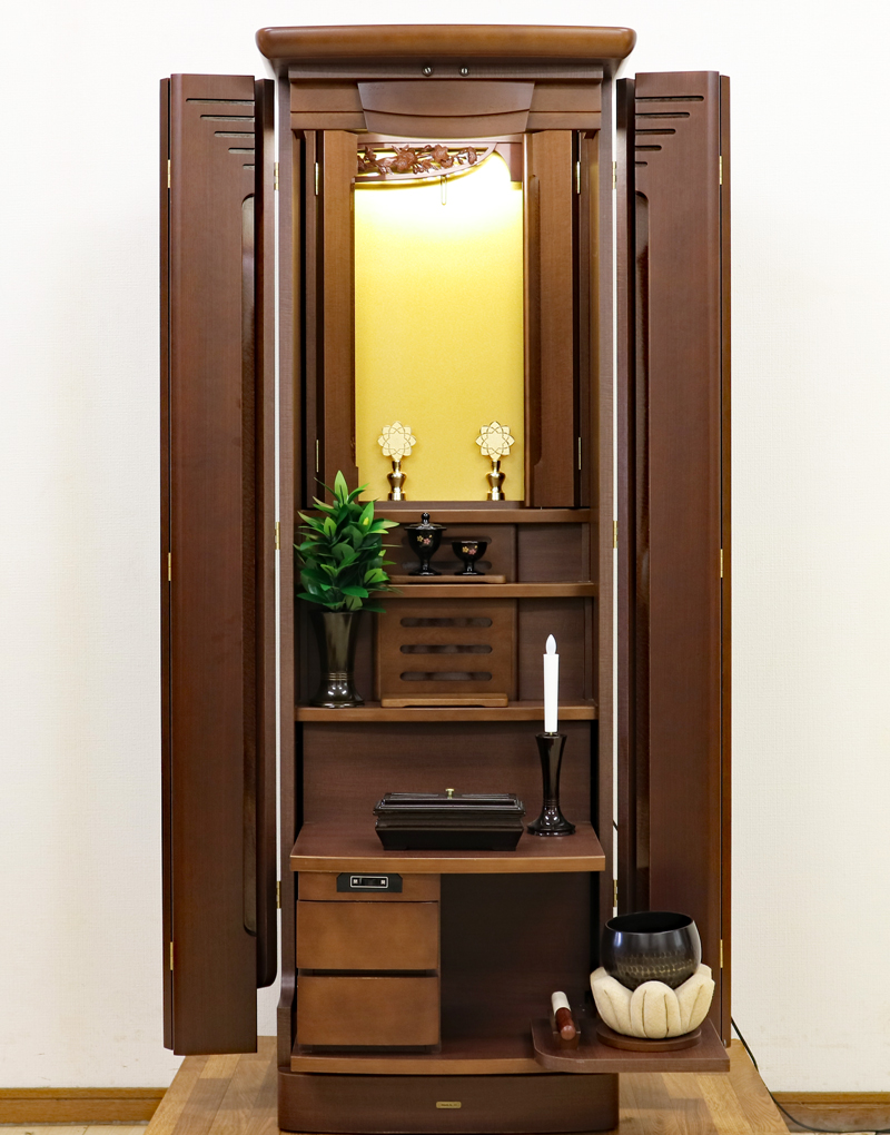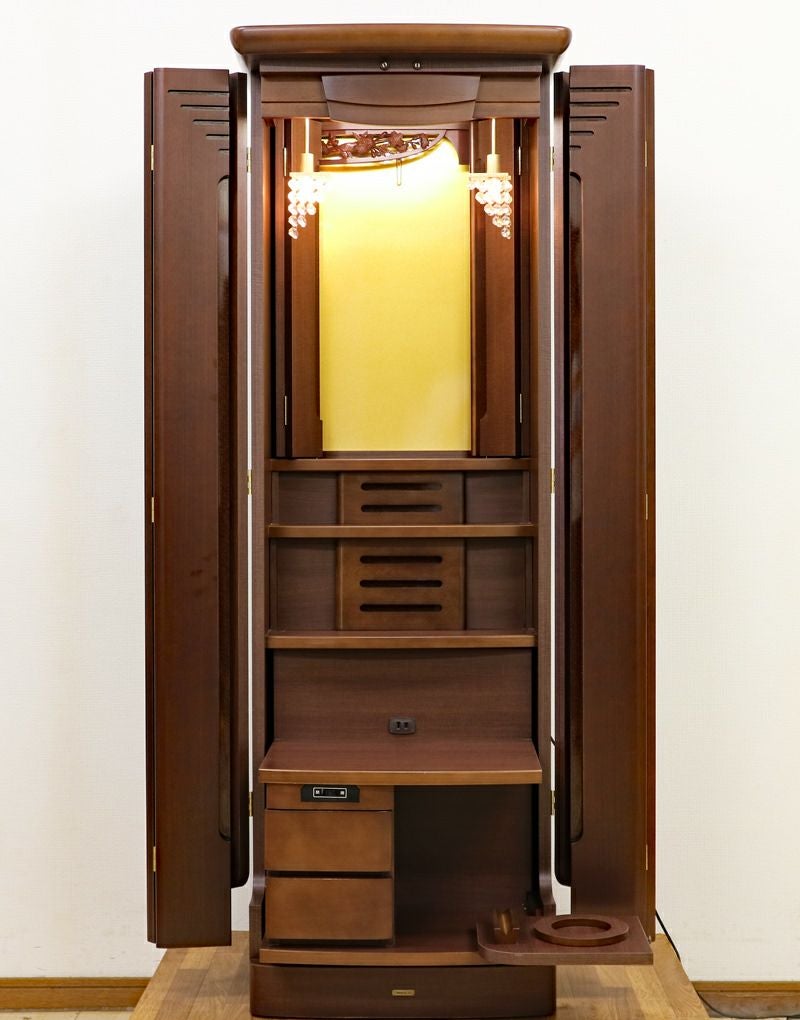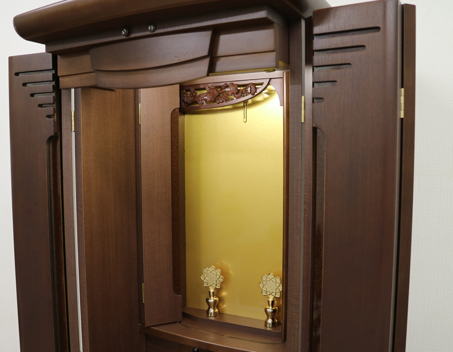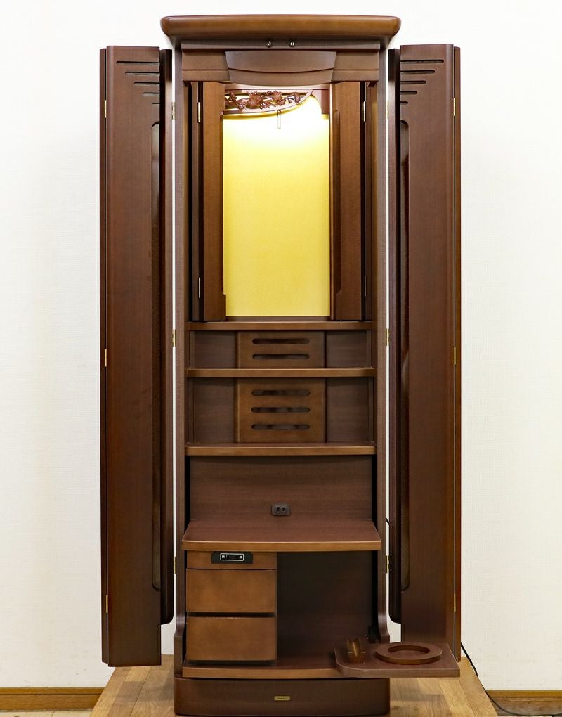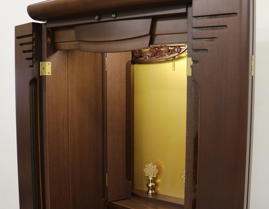 内部には蛍光灯照明も付属していますのでご本尊様を明るく照らしてくれます。