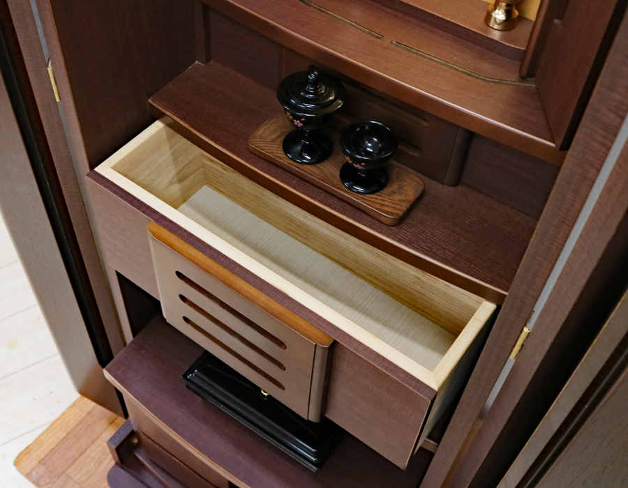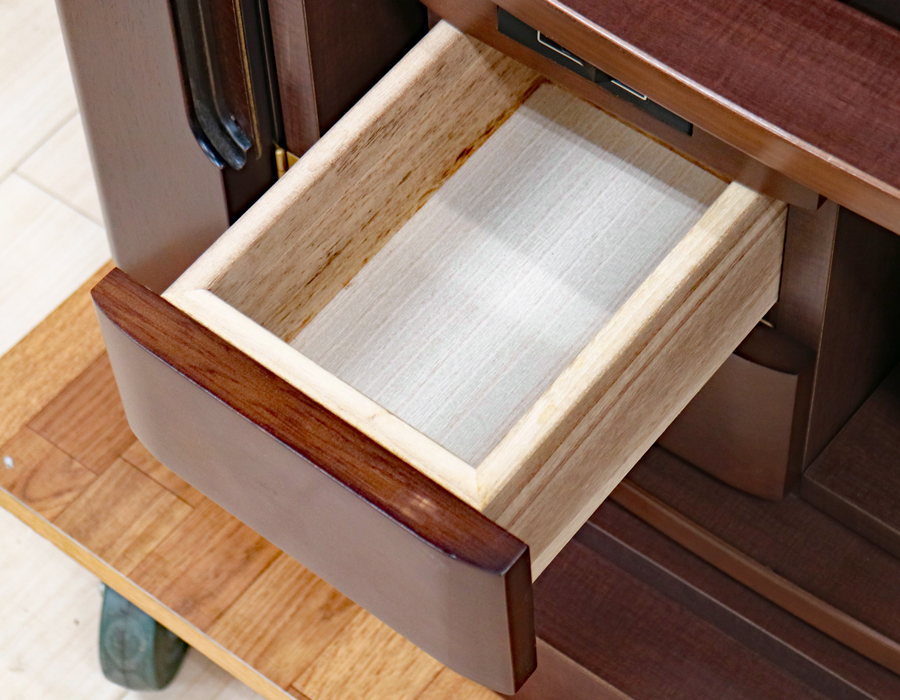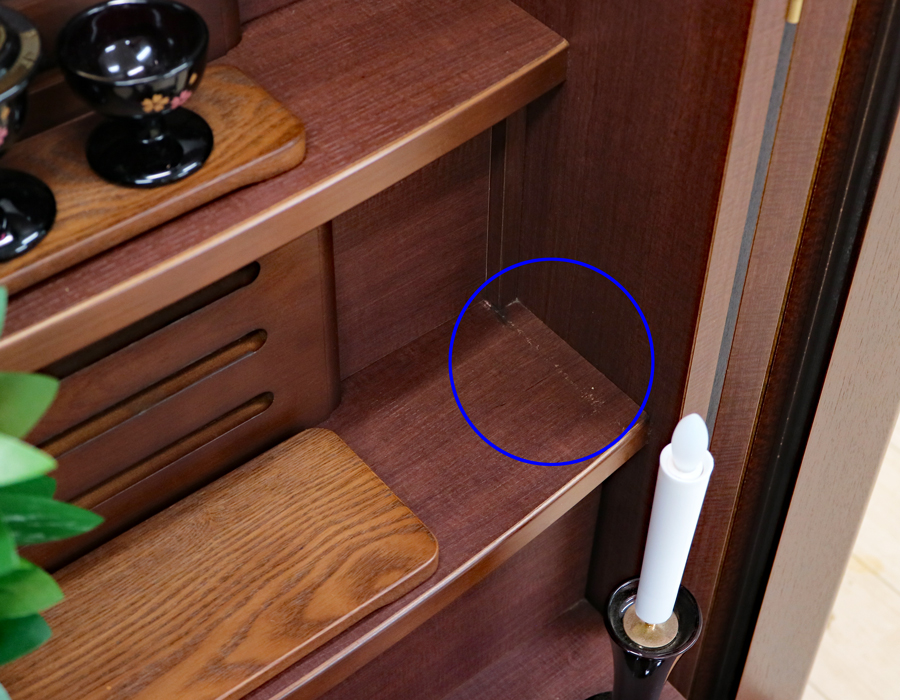 仏壇下部の引き出し2箇所の中に画像のようなシミが見られます。