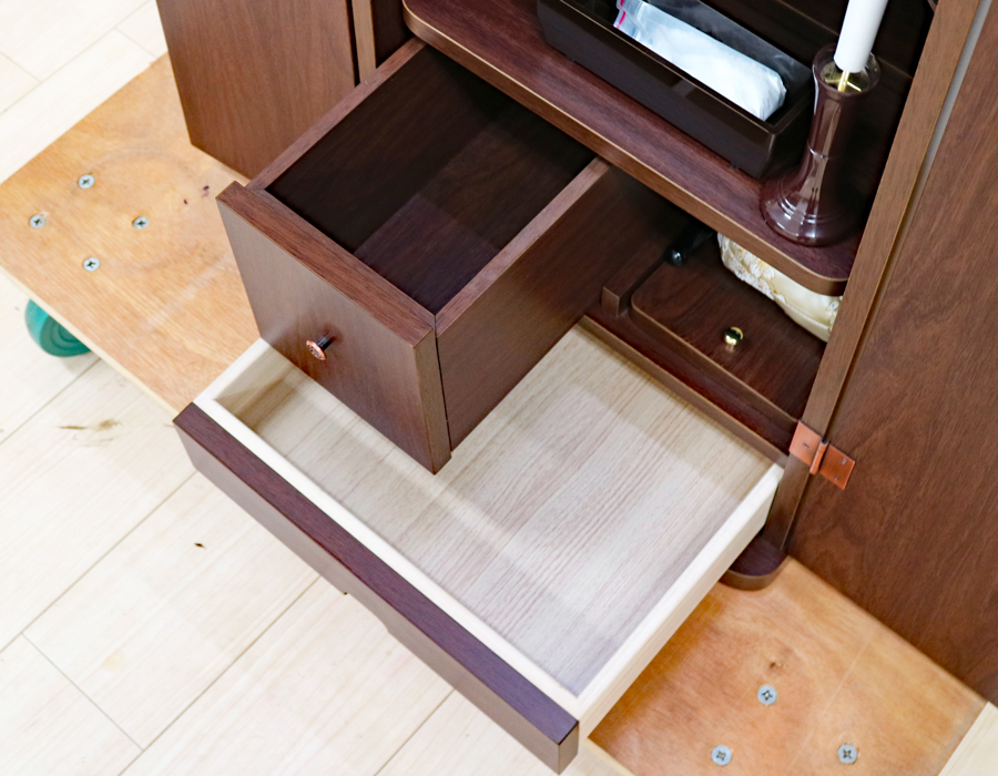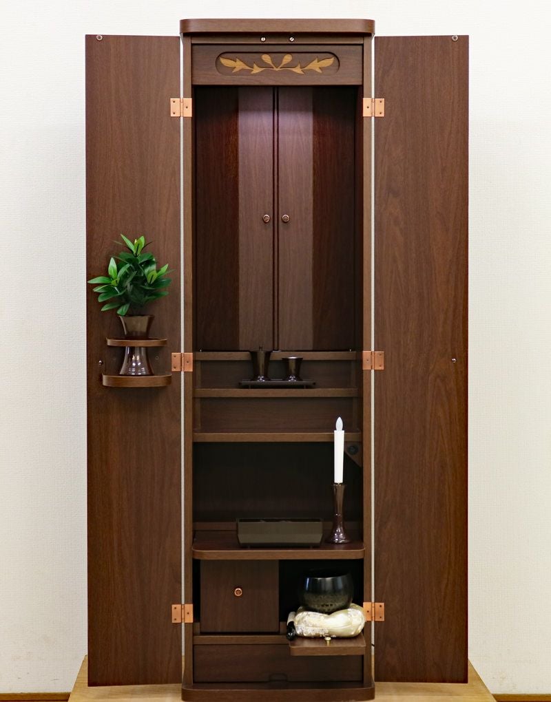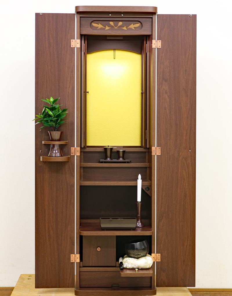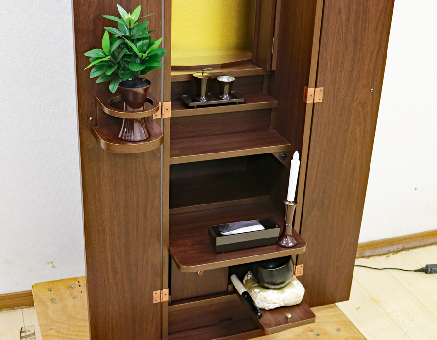 LED照明が設置されております。コンパクトでワンルームでも安心の家具調手動仏壇です。