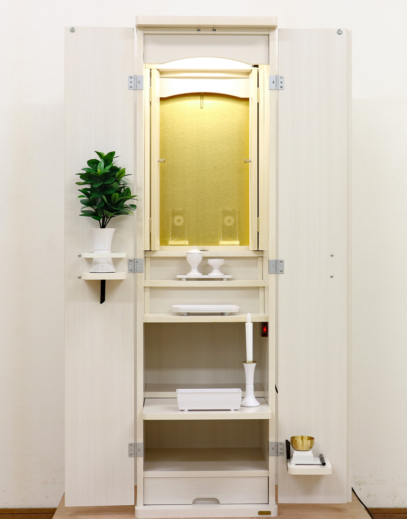 内部には蛍光灯照明も付属していますのでご本尊様を明るく照らしてくれます。
