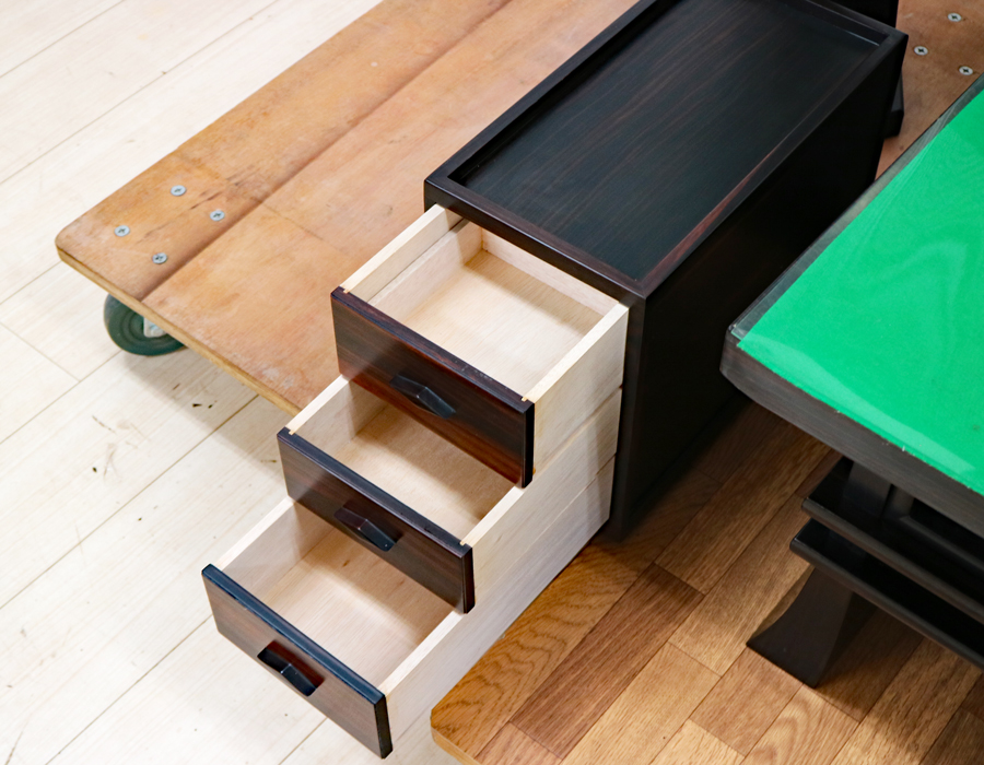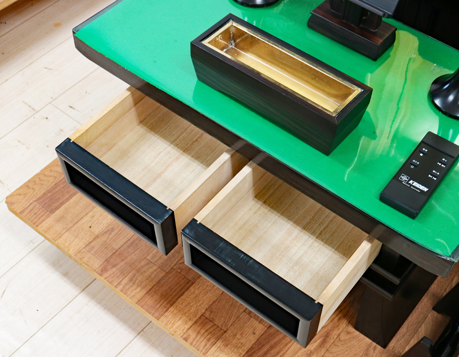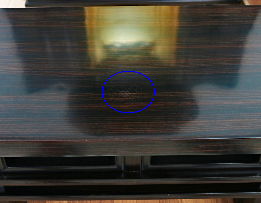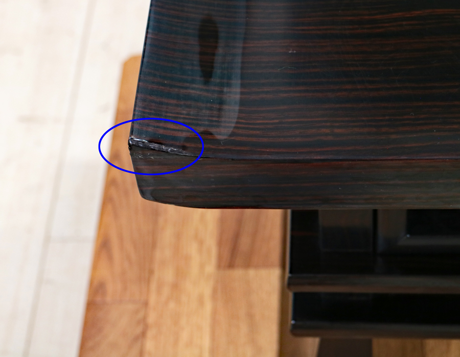 上記お写真の青丸の箇所(経机)に浮きがございます。