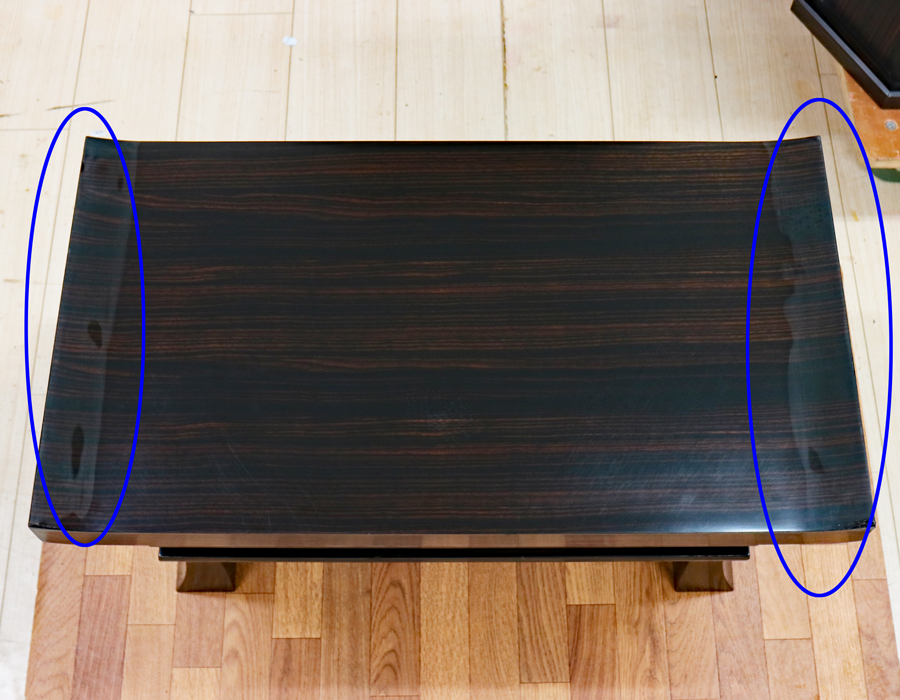 上記お写真青丸の箇所(経机天板両端)日焼けがございます。