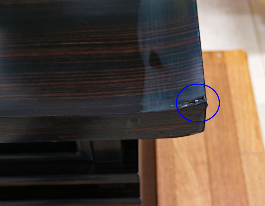 上記お写真の青丸の箇所(経机右前角)に打ち傷がございます。