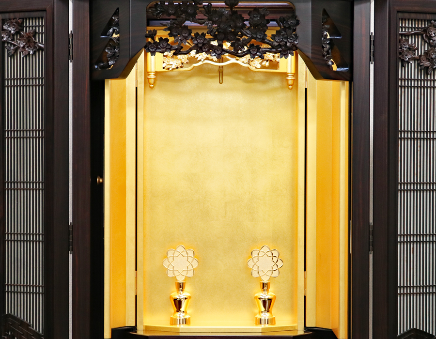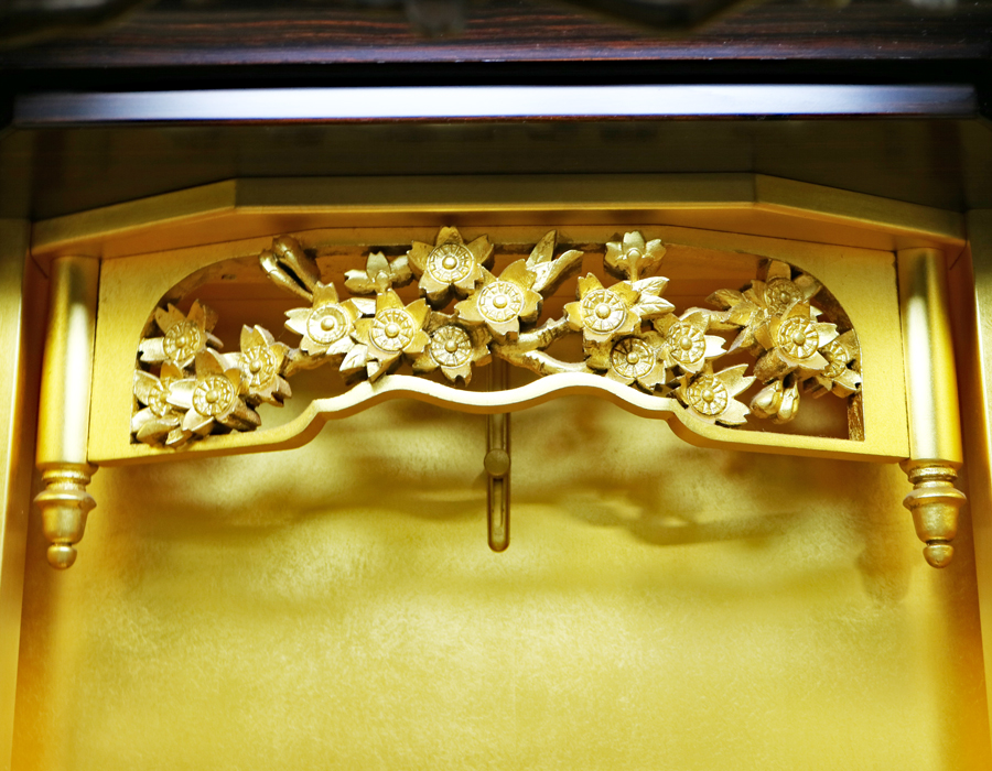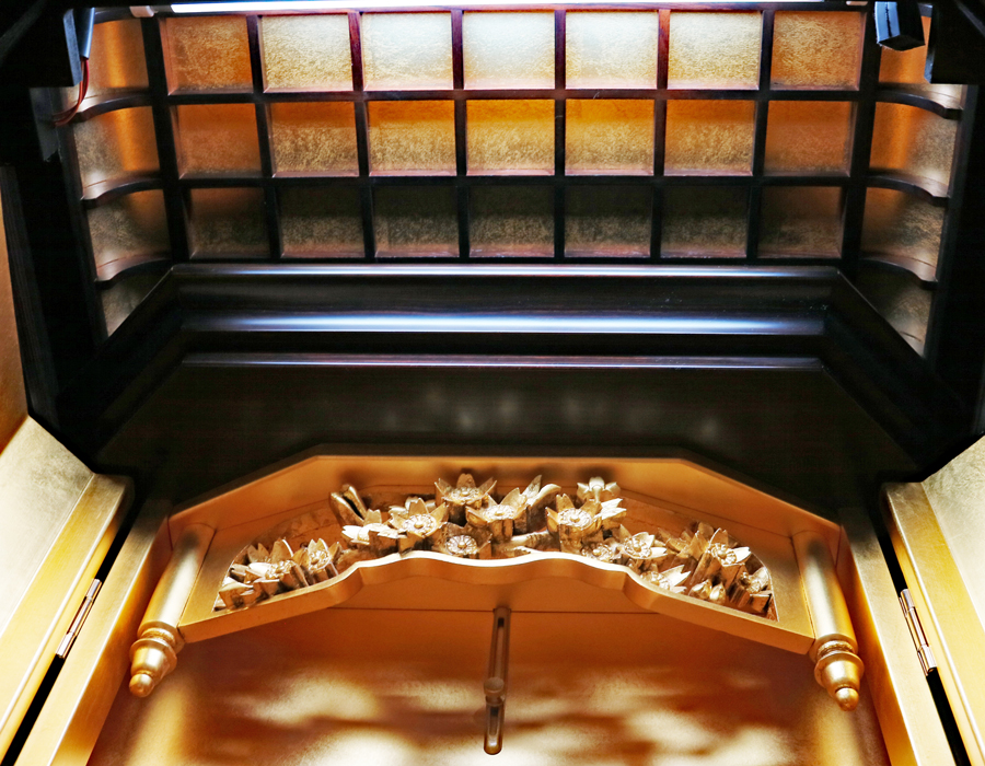 お厨子を開くと美しく本金箔を施した厨子板がご本尊様をさらに荘厳にしてくれます。