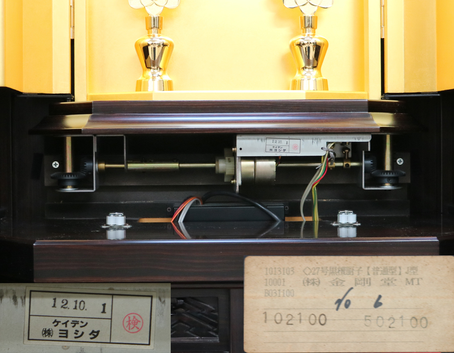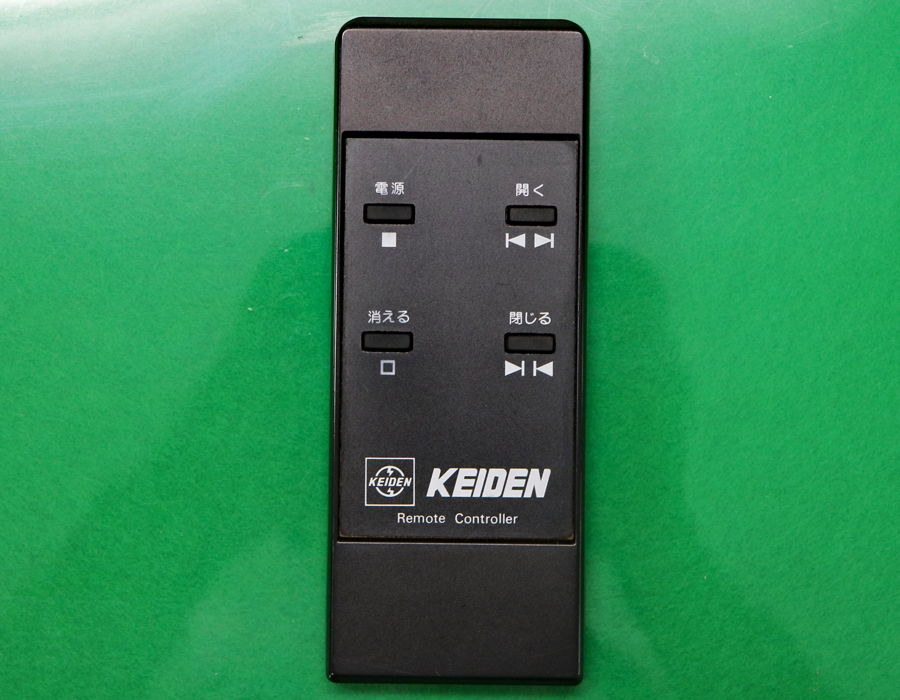 上記お写真のリモコンで、電源の入り切り電動厨子扉の開閉を行います。