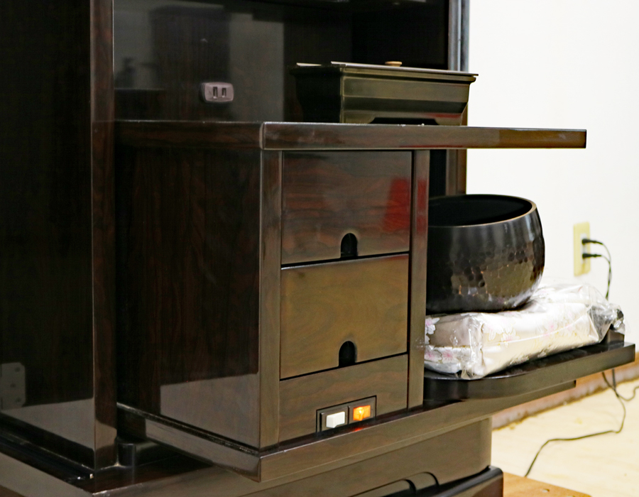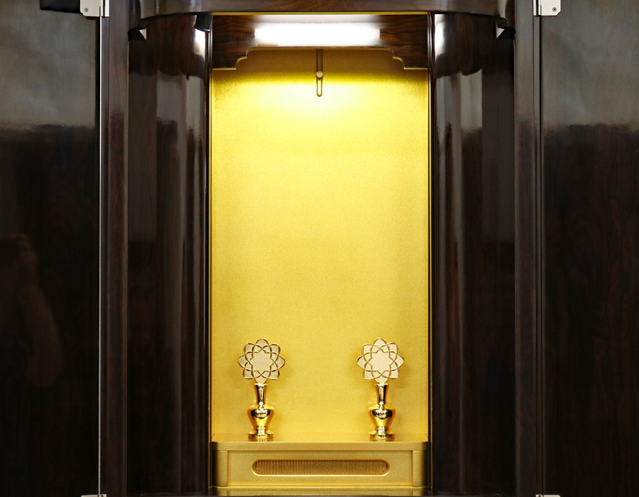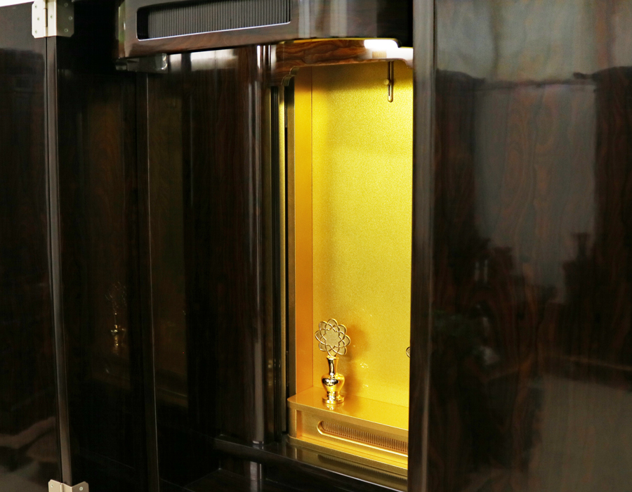 内部には蛍光灯照明も付属していますのでご本尊様を明るく照らしてくれます。