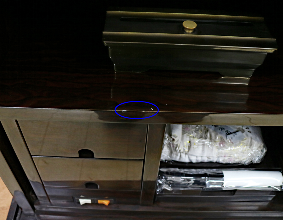 お写真ではわかりづらいですが角度によって、仏具跡がございます。