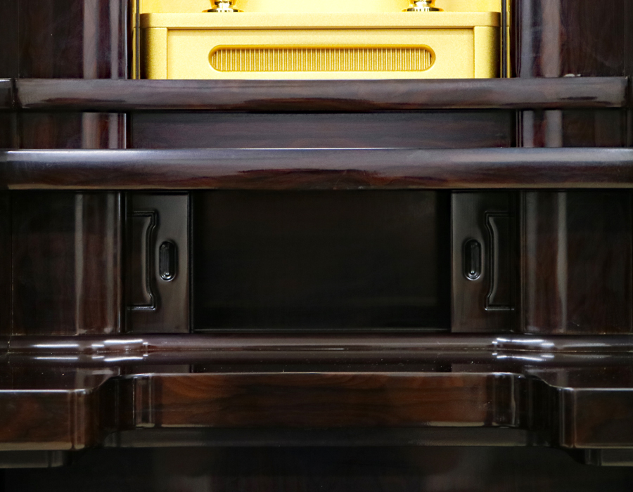 押し込み式大戸ですので、押し込むことで斜めからもご本尊様を拝すことができます。